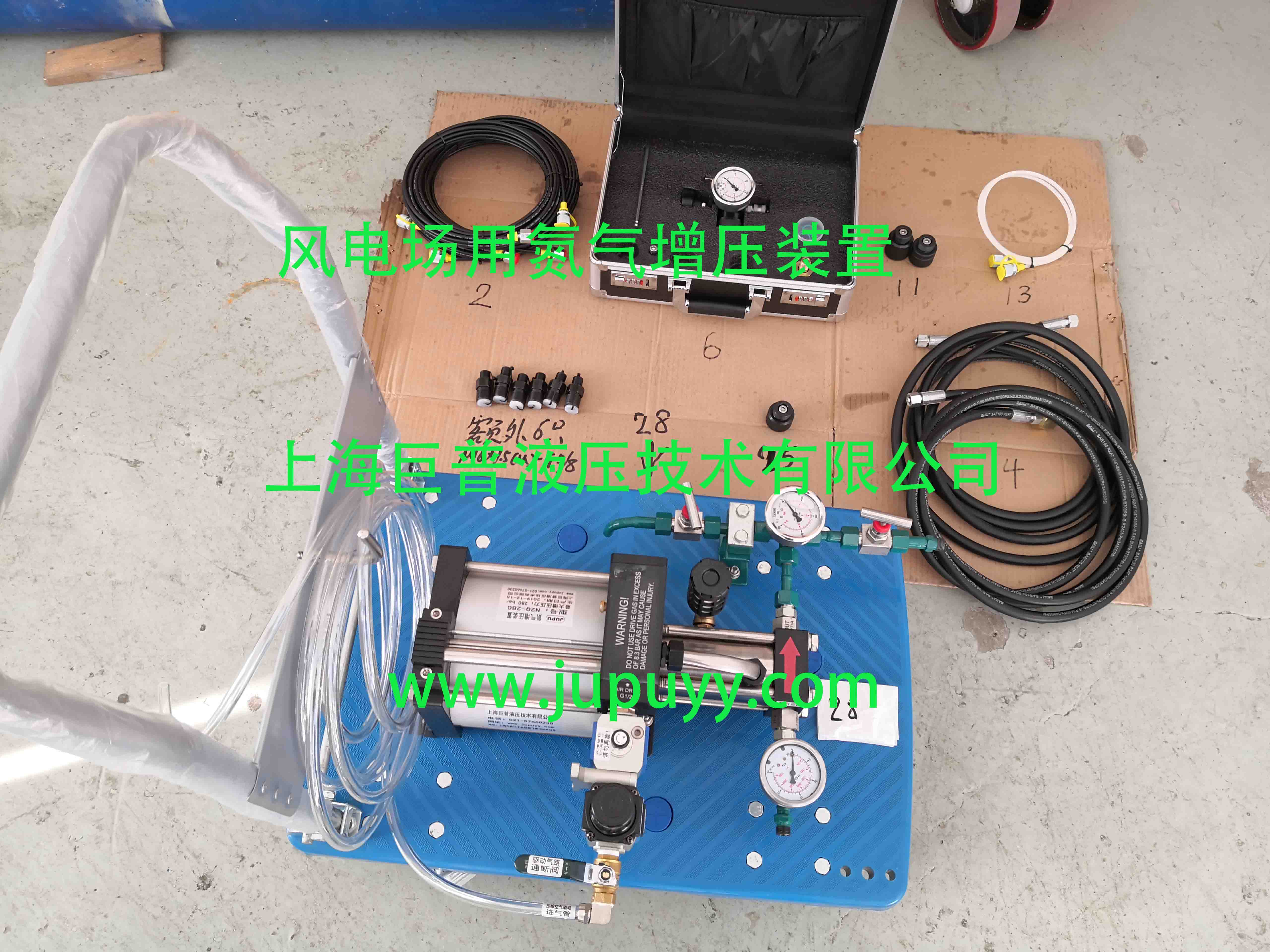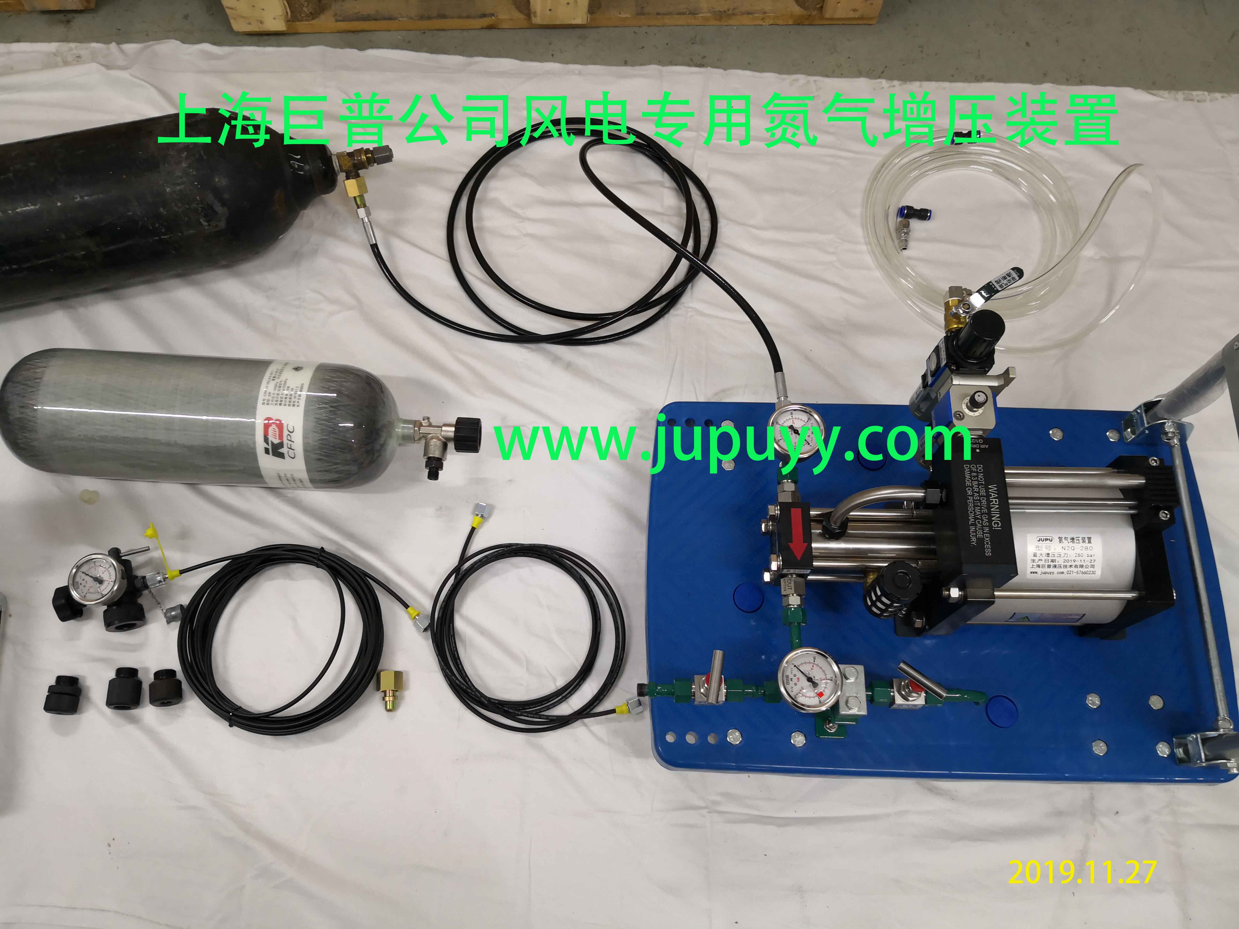 我公司氮气增压设备全套配置(氮气增压装、充氮工具、高压复合气瓶、管路等),适用于风电场给各类蓄能器充氮增压,使用方面,安全可靠,是风电行业蓄能器充氮的好帮手。