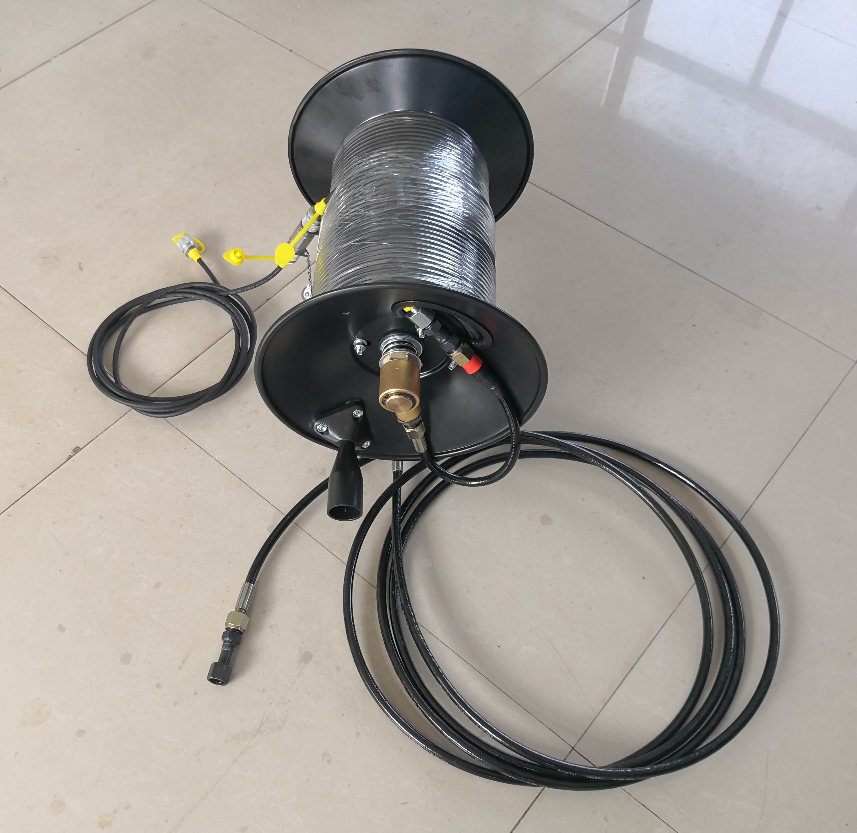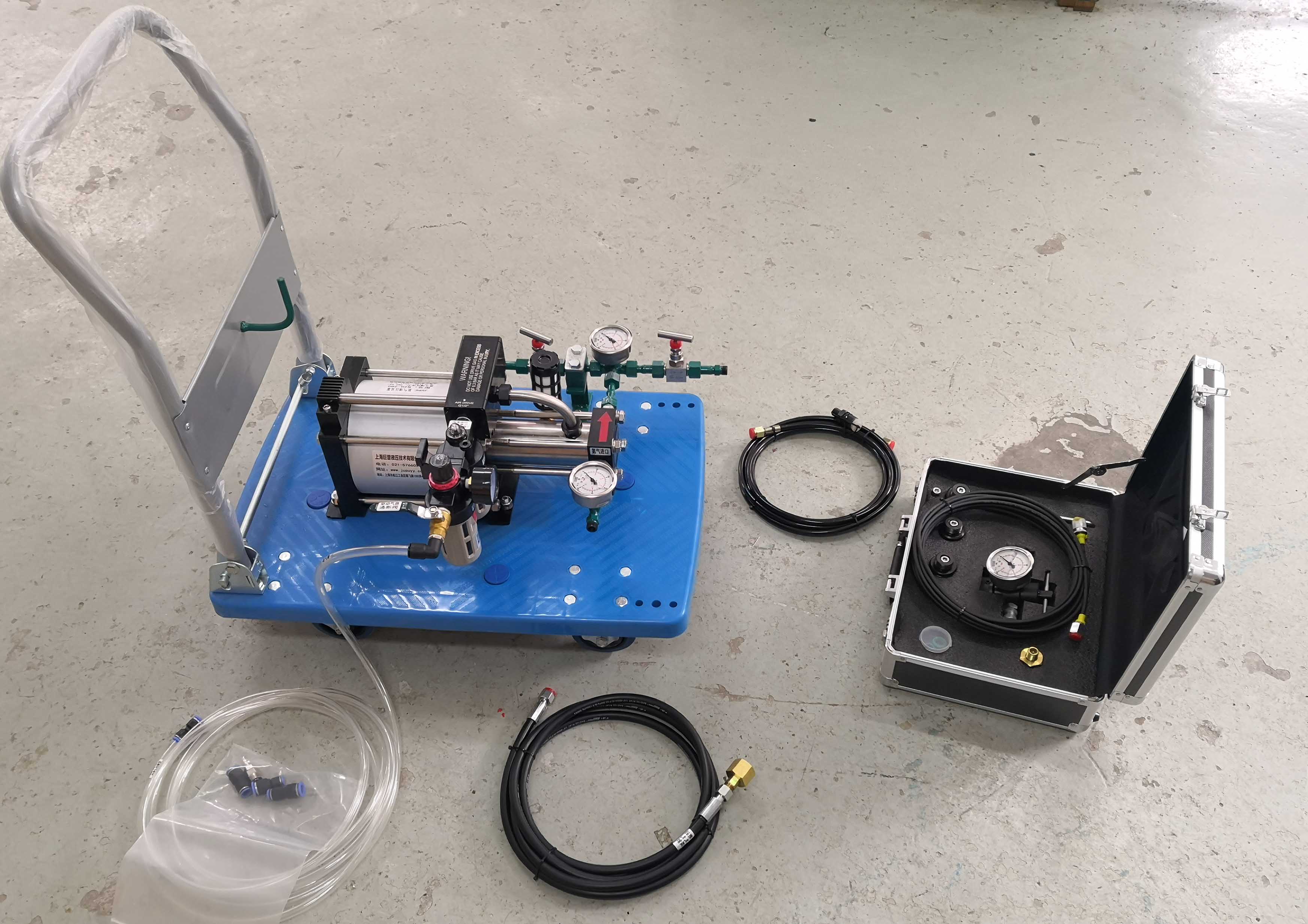 巨普公司生产供应风电行业蓄能器充氮增压设备,可选配110米高空卷管器,在地面实现对高空机舱内的蓄能器充氮作业。